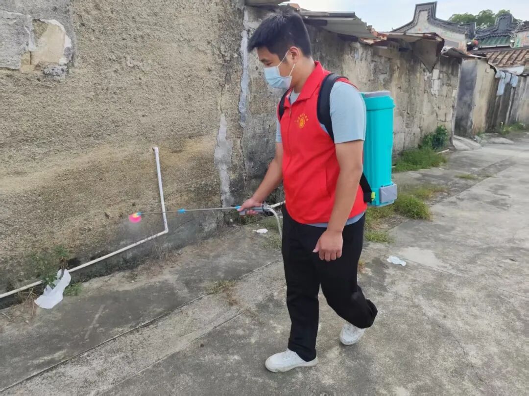 两英镇团委发动青年志愿者、义工、村民群众共同开展基孔肯雅热疫情防控工作:除杂草、清积水、清垃圾,并对蚊虫孽生高发点位进行药物喷洒消杀,有效巩固防疫成果,筑牢人民群众健康防线。