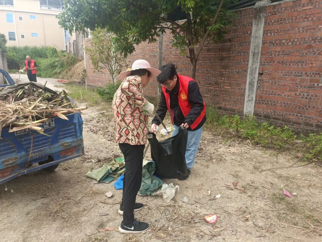 胪岗镇团委组织青年志愿者深入开展爱国卫生运动暨基孔肯雅热疫情防控工作,在新联村、胪岗镇各学校等公共区域开展卫生清理活动。志愿者们手持扫帚、铁耙、垃圾袋等工具,对公共区域的卫生死角进行全面清扫。同时,胪岗镇团委持续组织开展预防基孔肯雅热宣传活动,累计发动青年志愿者100余人次,发放“门前三包”倡议书和预防“两热”告居民一封信600余份。