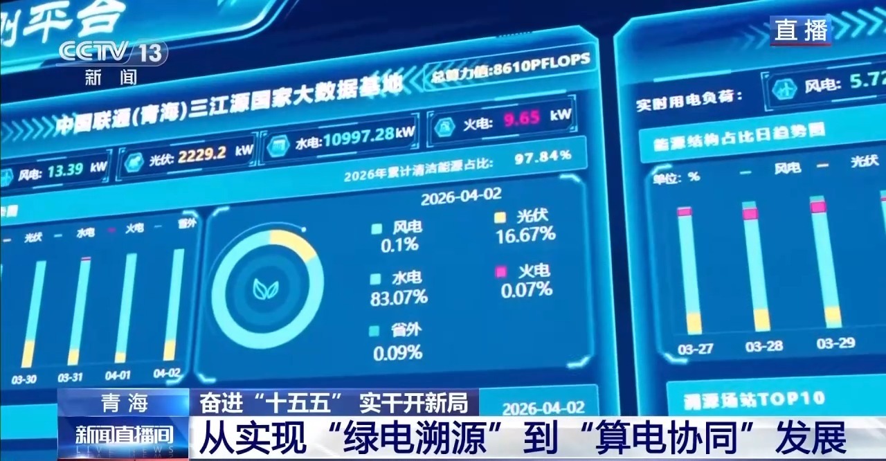 这种跨省的“算力迁移”能带来什么?当东部数据中心遇到用电高峰、电价较高,或者本地绿电不足时,青海就可以承接它的实时算力任务,算力任务可以像“搬家”一样实时迁移。哪里绿电多、电价低,算力就流向哪里,通过使用高占比的绿电,来显著降低企业运营成本。这项试验也将于今年年内完成。